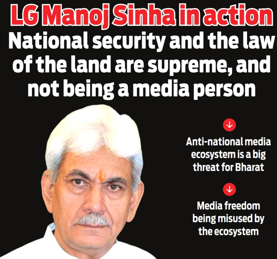 LG Manoj Sinha in action: National security and the law of the land are supreme, and not being a media person, Anti-national media ecosystem is a big threat for Bharat;  Media freedom being misused by the ecosystem