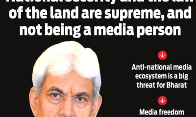 LG Manoj Sinha in action: National security and the law of the land are supreme, and not being a media person, Anti-national media ecosystem is a big threat for Bharat; Media freedom being misused by the ecosystem
